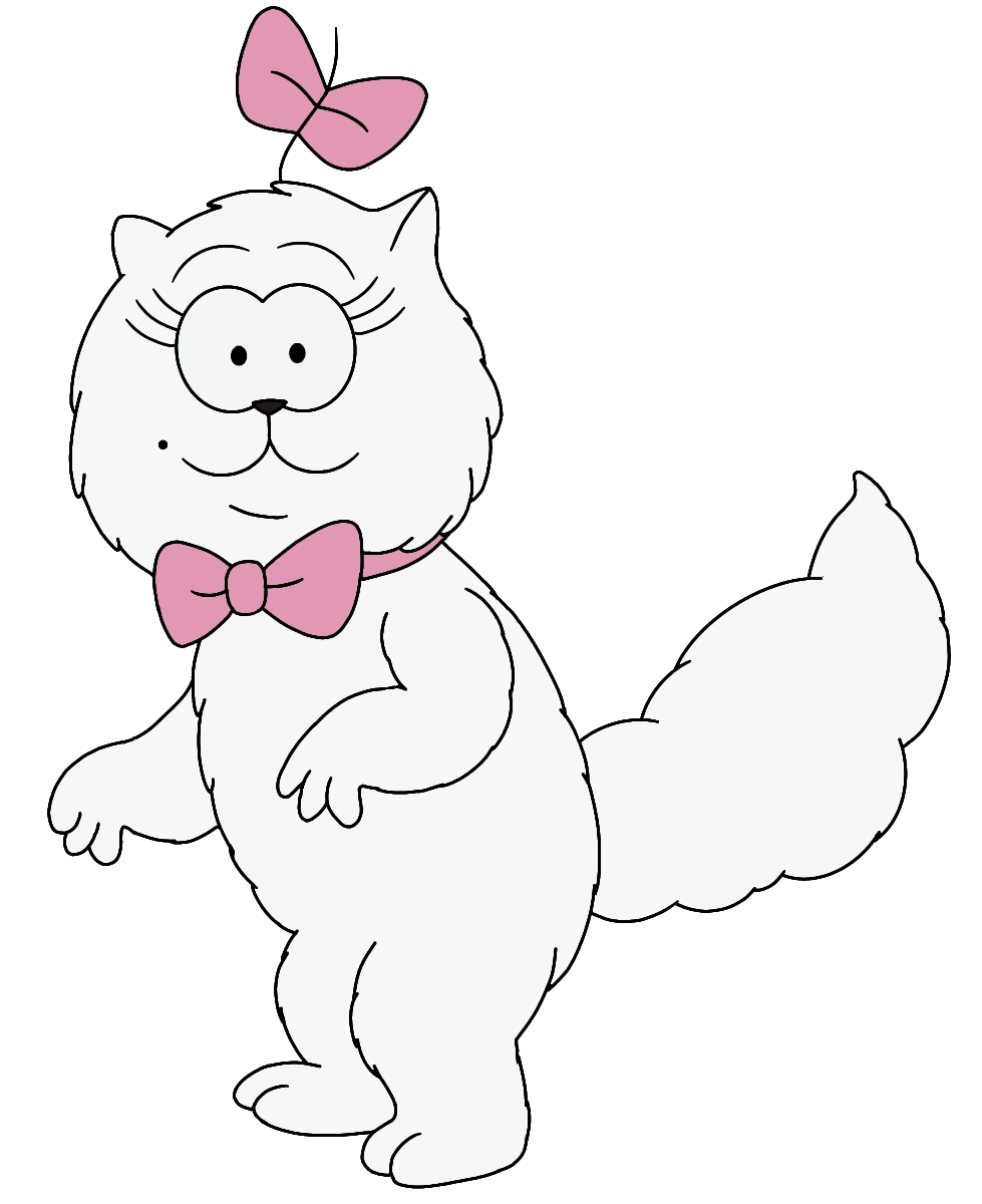 Sonja is a white, fluffy Persian cat, or possibly an Angora. She is often seen with a pink bow around her neck and a pink ribbon on a single strand of hair on the top of her head. She also has a little beauty mark under her left eye. The sclera of her eyes is pale blue. the pink bow around her neck wasn't used until around 1976-1977.